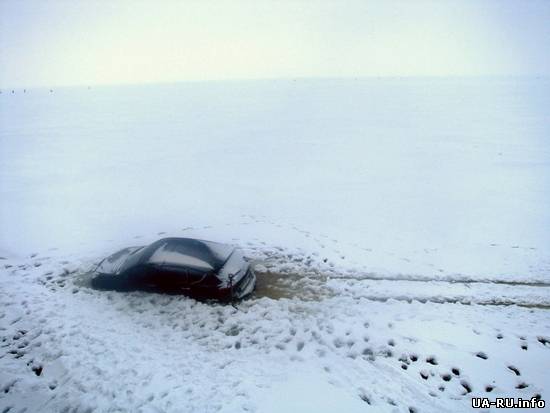 В Запорожской области авто затонуло при пересечении ставка, провалившись пол лед. В результате