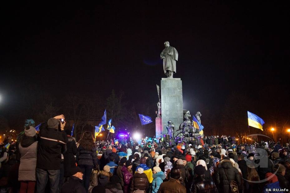 На традиционном ежевечернем митинге Евромайдана в Харькове отключили свет. Как передает