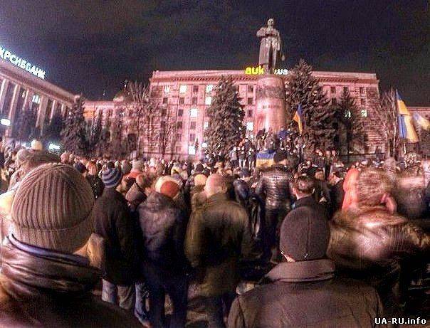 В Днепропетровске активисты валили памятник Ленину 6 часов - сначала руками, потом джипом, а затем