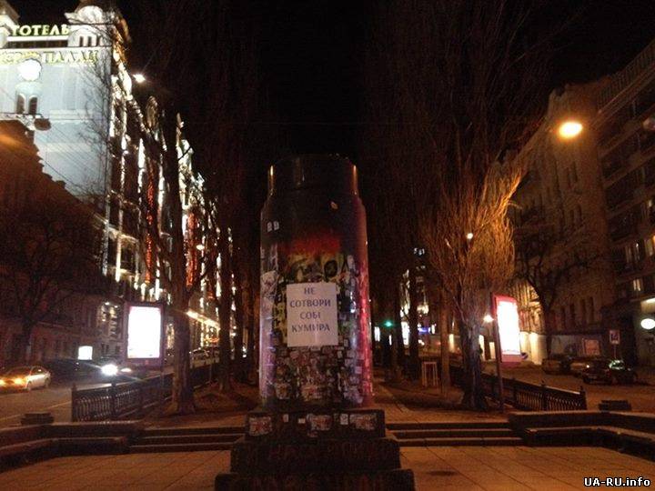 В Киеве появился памятник свободе из надписью "Не сотвори себе кумира". Им стал бывший памятник