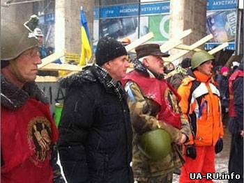 Он также призвал присутствующих записываться в отряды самообороны и уточнил, что опознавательным знаком их членов является желтая лента на руке с надписью "Самооборона". "Мы охраняем Майдан и мы не уйдем отсюда без победы. Мы будем охранять его до тех пор, пока надо. Мы будем стоять до конца", - подчеркнул Н.Павлив.
