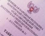 В сети интернет появилась фотография школьного табеля ученицы 6 класса общеобразовательной школы №21 города Шахтерск Донецкой области. На титульной странице документа нанесен двуглавый орел и надпись «Донецкая народная республика».