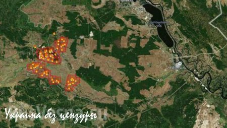 По данным ГСЧС Украины, огонь полыхает уже около поселка Буряковка.