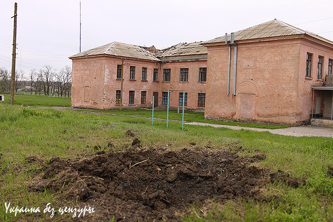 По селу работали 120-мм минометы, - говорит «Матрос». - Видимо решили приурочить эту акцию к великой дате — 70-летию освобождения нашей земли от немецко-фашистских орд. Били со стороны Широкино, с очистных сооружений. Частично разрушили школу, спортзал. Это, кстати, единственна школа на три поселка.
