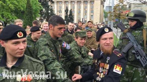 Моторола со своим разведбатом «Спарта» и Гиви с батальоном «Сомали» 9 мая открыли Парад Победы в Донецке и сорвали овации зрителей.