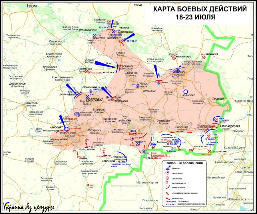 Линия фронта перед отводом ополчения из Лисичанского выступа.