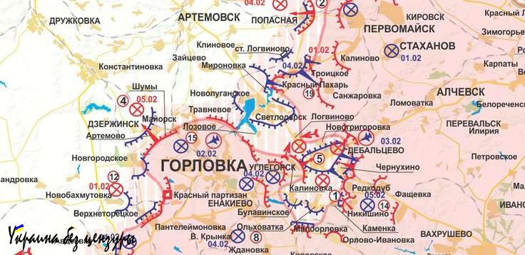 Линия фронта под Дебальцево накануне решающего броска "Ольхона" и ГРУ ДНР на Логвиново