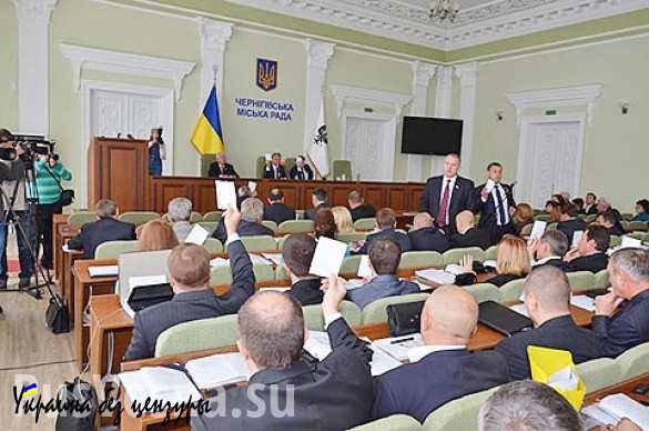 В Чернигове около 200 протестующих блокируют сессию горсовета, требуя снижения тарифов на жилищно-коммунальные услуги.