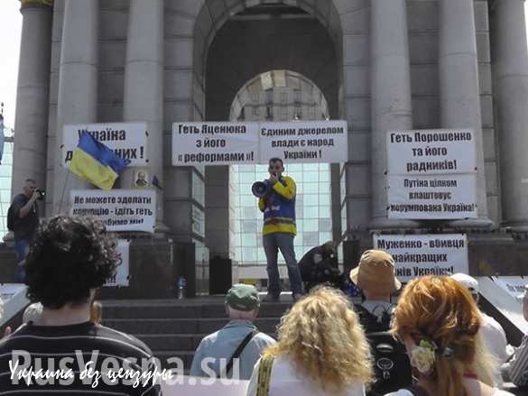 «Со стороны улицы Институтской внезапно прибежали парни спортивного телосложения в масках, — приводит слова очевидцев украинское издание „Вести“. — Их было от 50 до 100 человек. Они начали громить палатки. Людям, которые там находились, досталось».