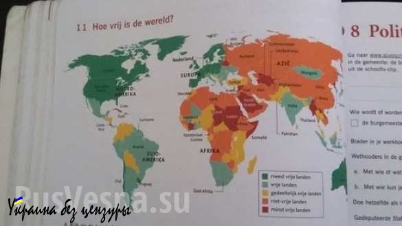 Несколько дней назад голландец разместил в социальной сети фото страниц учебника дочери. Учебник по предмету, аналогом которого является наше обществоведение или социология («Themes in Social Studies 1 for VMBO-KGT»), предмет входит в учебный план последних двух лет школьного обучения, учащимся в среднем 15-16 лет.
