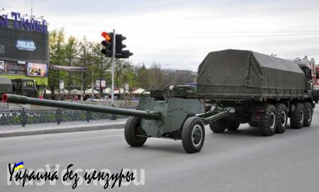 На параде присутствовали три грузовика-тягача, буксировавшие артиллерийские установки. Стоит отметить, что присутствовали запрещенные минскими соглашениями установки — противотанковая пушка 100 мм 2A29 «Рапира» и две 122-мм гаубицы D30.