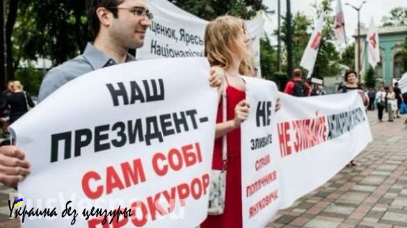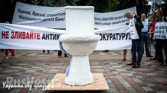 Также протестующие принесли под здание администрации президента Украины трехметровый унитаз.