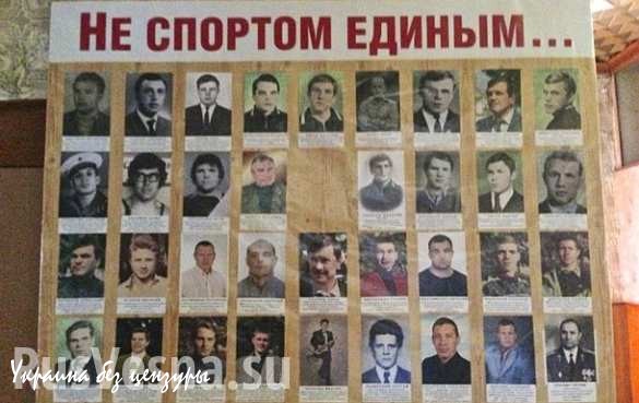 При этом еще год назад фото Порошенко еще было на стенде (см. фото). А спустя год о тренировках и спортивных достижениях Порошенко здесь вспоминают неохотно.