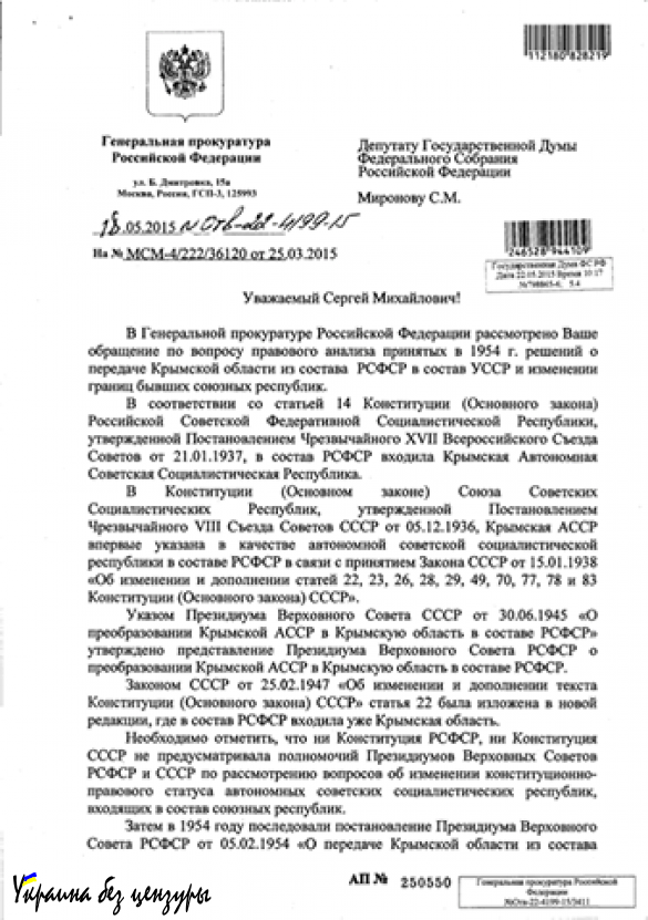 Генпрокуратура РФ подтвердила незаконность передачи Крыма Украине (ФОТО)