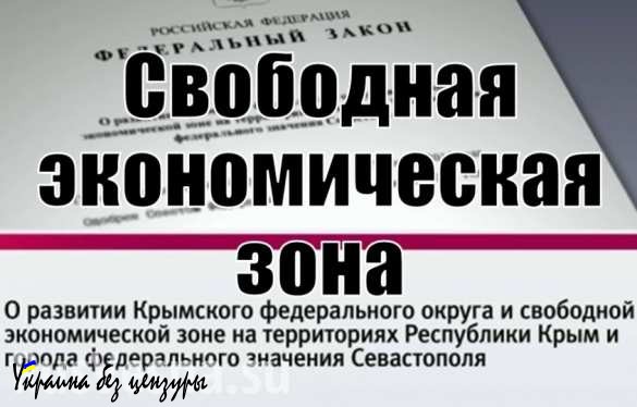 Закон о создании в Крыму и Севастополе свободной экономической зоны (СЭЗ) вступил в силу с 1 января 2015 года. Он устанавливает особенности налогообложения в Крыму и Севастополе, особенности госконтроля, въезда, функционирования СЭЗ. Срок работы СЭЗ — 25 лет, возможно продление режима.