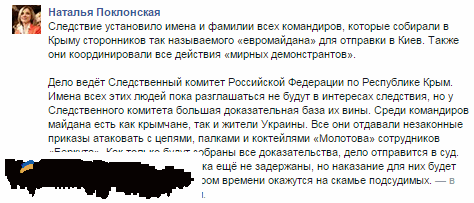 Помимо этого работают и по линии «евромайдана». Поклонская еще в мае анонсировала аресты тех организаторов евромайдана в Крыму, кого смогут отловить.