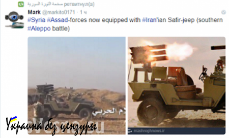 В сети опубликовано фото иранского джипа с реактивной установкой под сирийским городом Алеппо