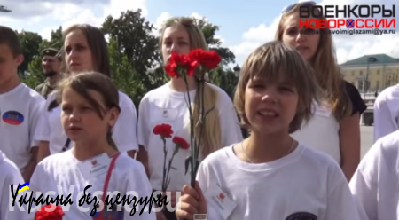 Дети из Горловки вместе с ополченцами развернули флаги Новороссии у стен Кремля (ВИДЕО)