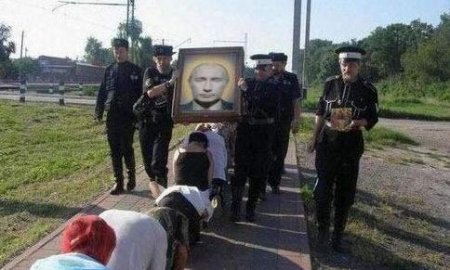 Маразм крепчал. Россияне теперь молятся Путину. Фото.