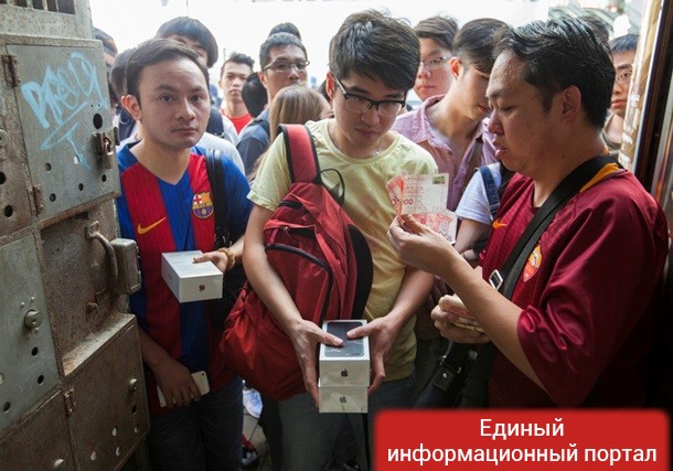 Первые клиенты Apple продают свои новые IPhone 7s торговцам через дорогу от магазина Apple в Гонконге утром в день старта официальных продаж. Дилеры предлагают около 8000 гонконгских долларов (1000 долларов США) за iPhone 7 на углах улиц и переулков, с тем, чтобы позже продавать их на китайском материке. Практика не является незаконной, но и не одобряется