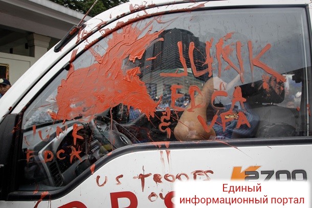 На Филиппинах полицейский фургон врезался в толпу демонстрантов во время антиамериканского митинга у посольства США в Маниле, сообщает Associated Press в среду, 19 октября.