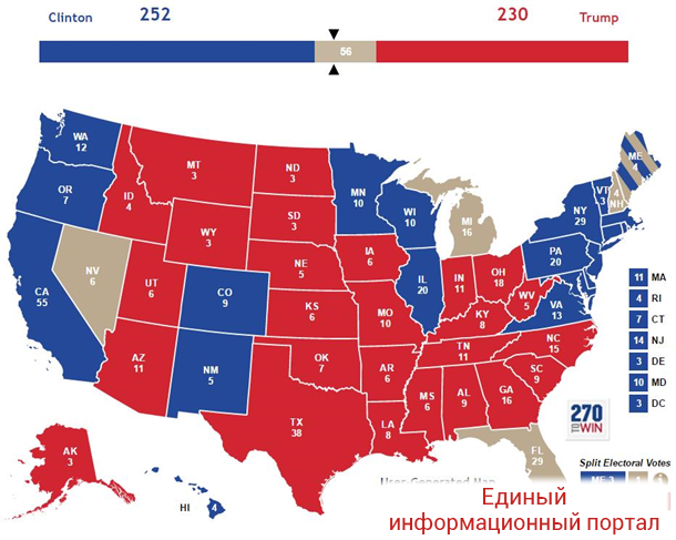 В настоящее время плотная борьба за победу идет в штатах Колорадо, Флорида, Мичиган и Невада. В этих штатах пока неясно, кто именно победит.