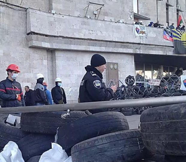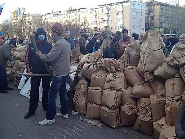3axвaтившиe Дoнeцкyю oблгocaдминиcтpaцию ceпapaтиcты гoтoвятcя к штypмy здaния cилoвыми cтpyктypaми.