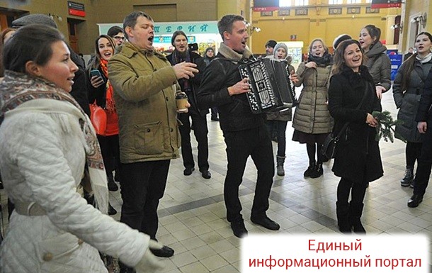 Отмечается, что ни один из пассажиров на вокзале не возмутился репертуаром, который выбрали для пения участники акции.