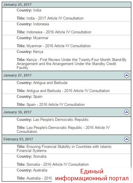 Согласно документу, 25 января будет рассмотрено сотрудничество фонда с Индией, Индонезией, Мьянмой и Кенией. 27 января – с Антигуа и Барбуда, а также с Испанией. 30 января в повестке дня только одна страна – Лаос, а 3 февраля – сотрудничество с Сомали и Австралией.