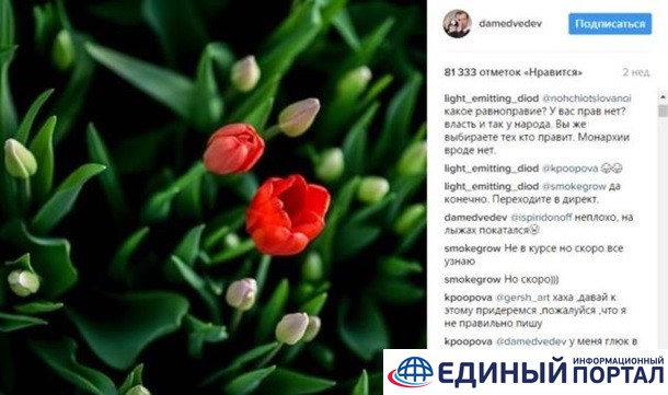 Пользователь под именем ispiridonoff спросил премьера: "Как день?" В ответ Медведев написал: "Неплохо, на лыжах покатался", - и добавил подмигивающий смайлик с высунутым языком.