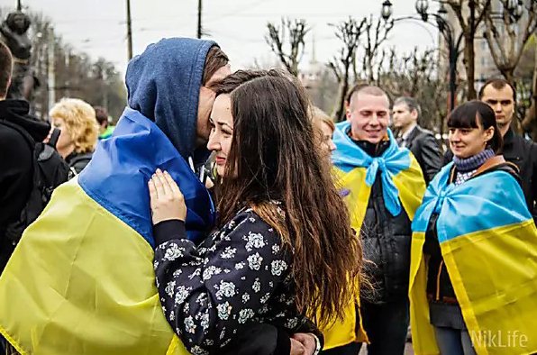 На акцию против ввода российских войск в Днепропетровске пришли 10 тысяч че ...