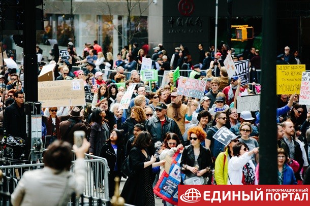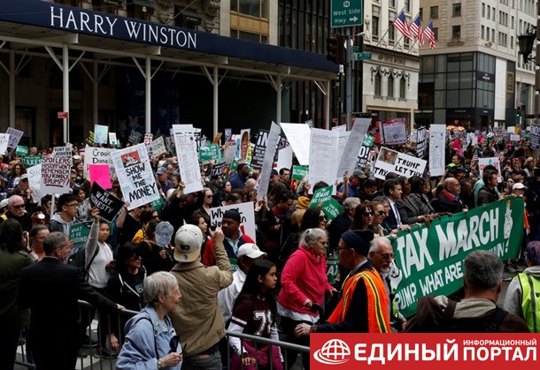 На улицы Нью-Йорка 15 апреля вышли тысячи протестующих на "Налоговый марш", требуя от президента США Дональда Трампа публикации его налоговой отчетности, передает Reuters.