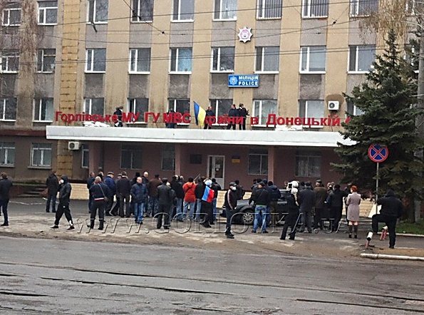В Горловке сепаратисты пытаются захватить здание городского управления милиции. Пророссийски