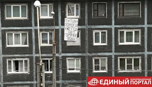 Так, на этой неделе жители дома №6 на Кольском проспекте в Мурманске вывесили из окна плакат "Путин помоги! Уже год нет горячей воды!".