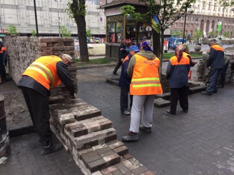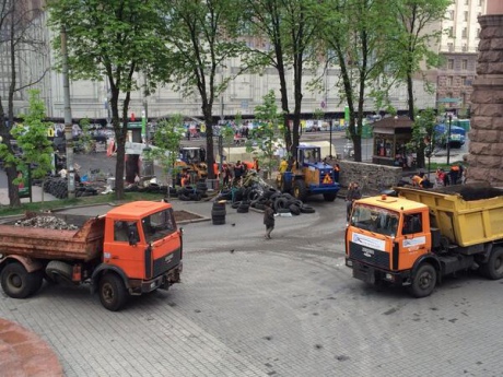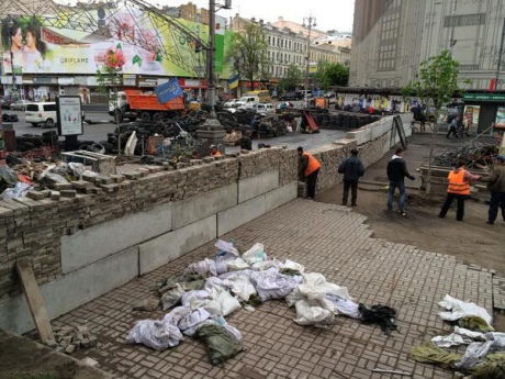 В центре Киева разбирают старые баррикады и строят капитальные
