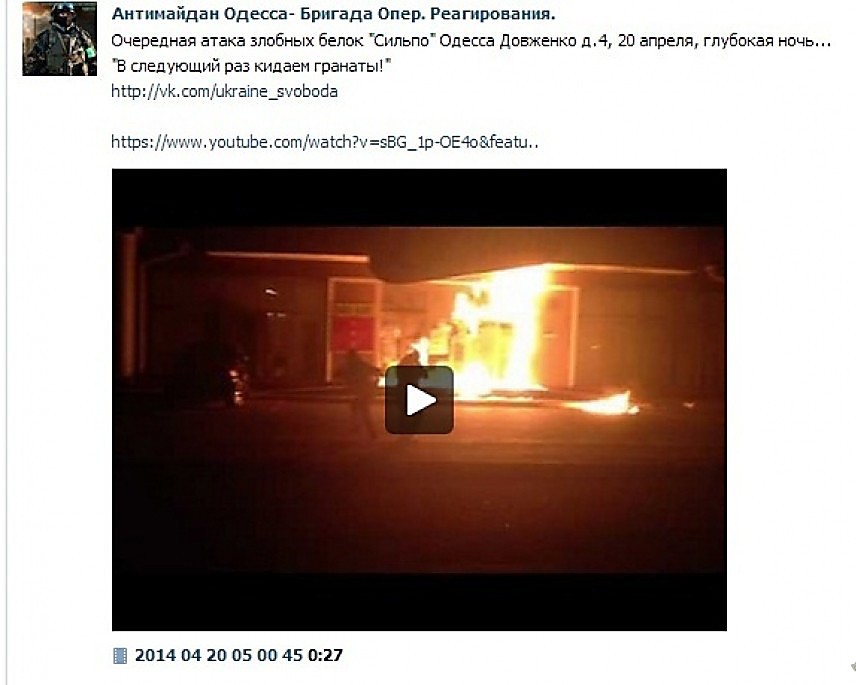 Ответственность за поджог взяла на себя группа пророссийских радикалов, именующая себя БОР — «бригада оперативного реагирования».