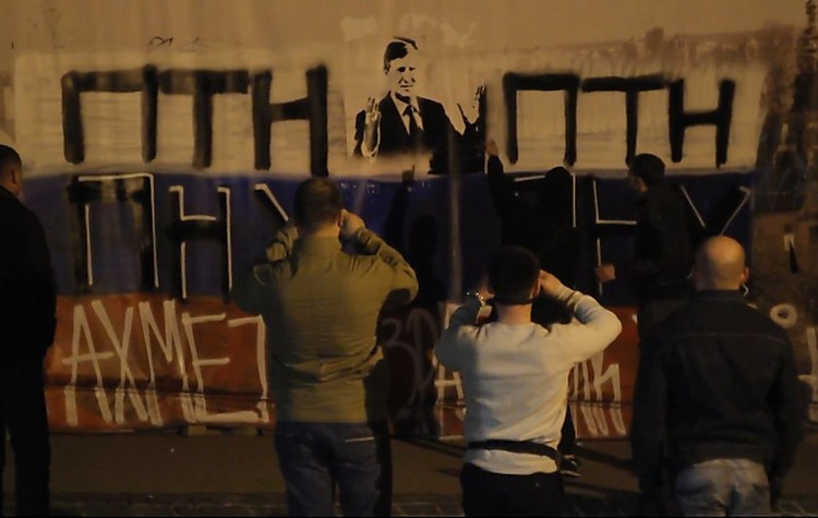 В интернете опубликовано видео, как ночью в Киеве активисты оставили на строительных объектах компании Рината Ахметова граффити с обвинениями бизнесмена в «предательстве Украины».