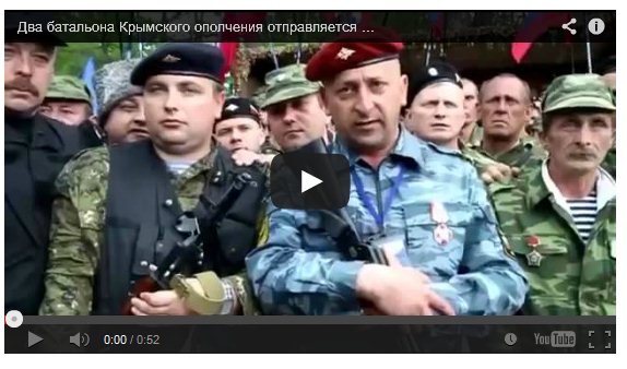 В YouTube появилось видео, на котором мужчины, представившись ополчением Крыма обращаются к жителям юго-востока Украины с заявлением, что они едут в составе двух батальонов помогать местной самообороне.