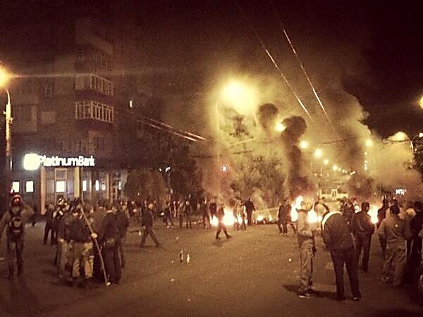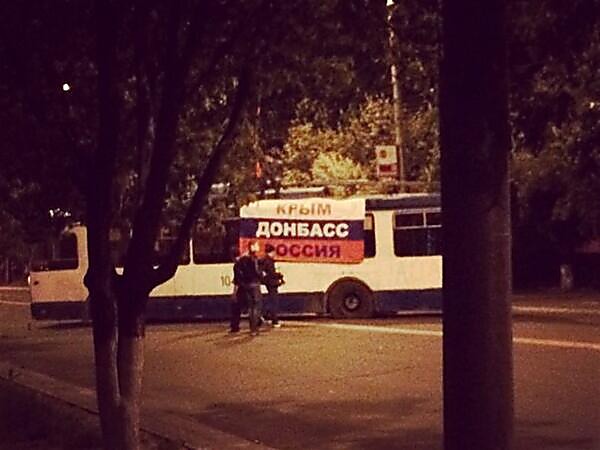 Тем временем в самом городе неизвестные люди в камуфляже и масках заблокировали подъезды к местному горсовету. Так же троллейбусами были перекрыты улицы. На дорогах жгли шины, из колонок, установленных на мэрии, звучала сирена.