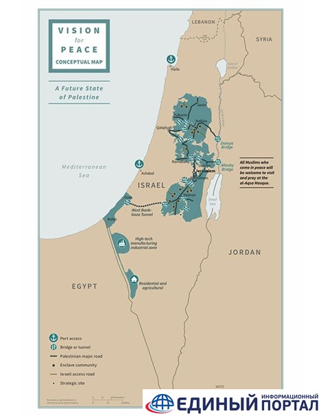 В плане отображена концепция "двух государств для двух народов" - израильтян и палестинцев.