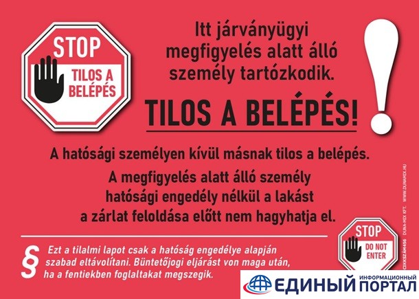 Главные новости страны ua-ru.info » Новости » В Венгрии людей на карантине обязывают ставить знак на дверях