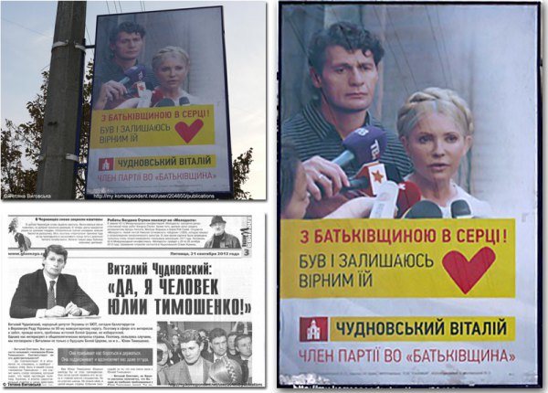 Как известно, ранее Чудновский был охранником Юлии Тимошенко, затем стал народным депутатом, а в период следующей избирательной кампании-2012 г. (когда Тимошенко находилась в Харьковской колонии) позиционировал себя в тесной привязке к Юлии Тимошенко, что позволило ему победить в Белой Церкви.