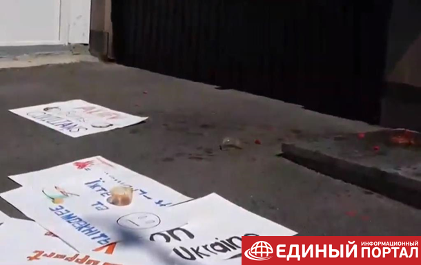 В Армении посольство Украины облили борщом