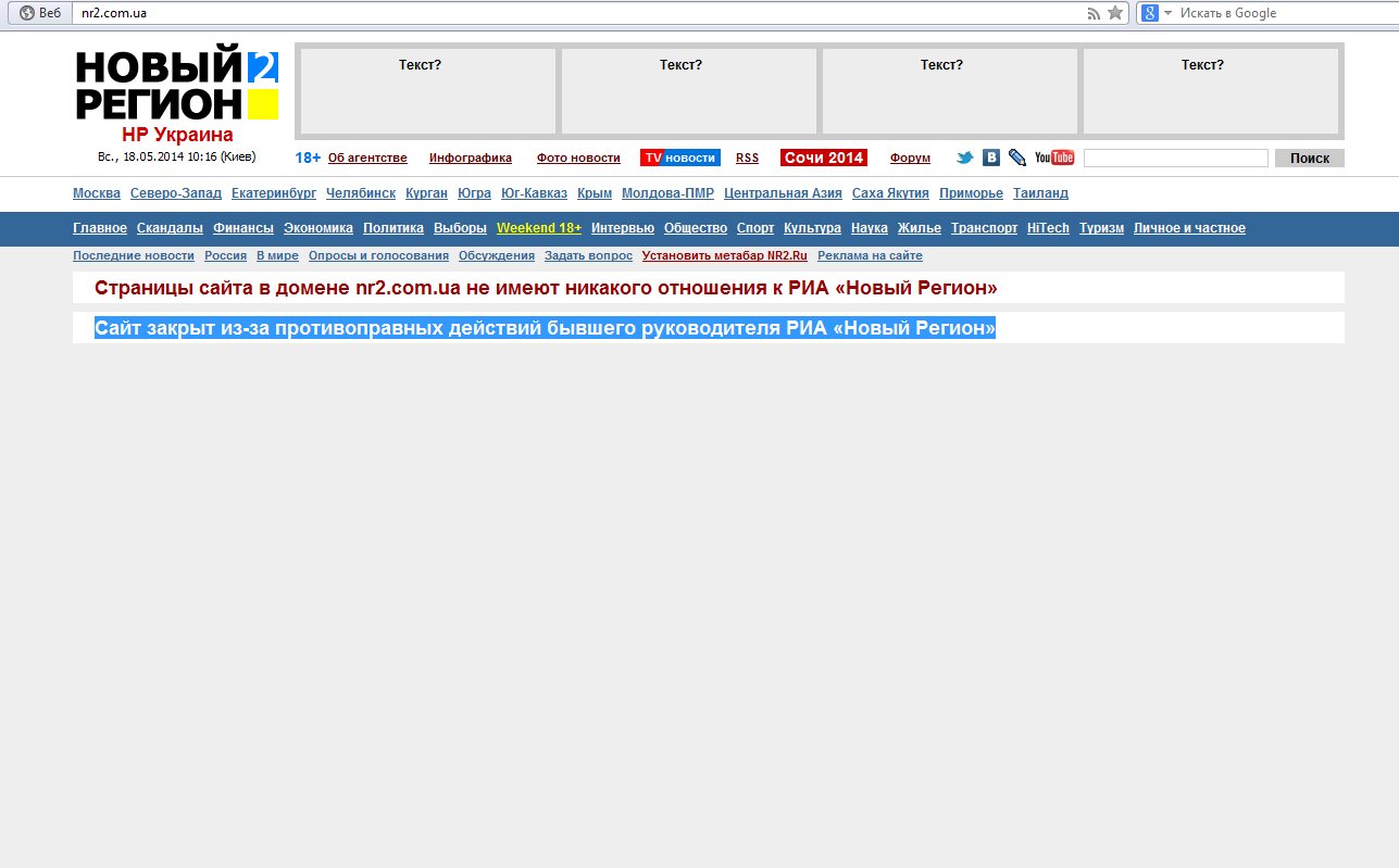 В России закрыли одно из последних независимых информационных агентств, которое объективно освещало ситуацию в Украине. Сегодня сайт Украинской редакции РИА "Новый Регион" прекратил свое существование.