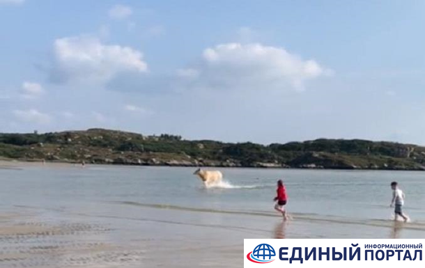 В ирландском городе Банбег отдыхающий на пляже снял на видео, как корова выплыла из моря. Видео опубликовало издание UPI.