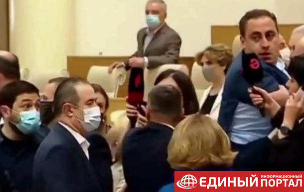В законодательном органе Грузии произошло несколько потасовок, после того, как основатель оппозиционного телеканала ТВ Пирвели Вато Церетели решил войти в зал заседания.