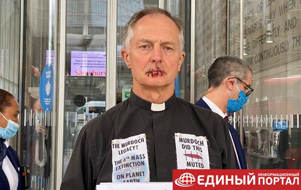 Британский священник Тим Хьюиc зашил себе рот, выражая протест замалчиванию темы изменения климата в СМИ, принадлежащих Руперту Мердоку. Видео процесса снято в Лондоне, вблизи здания холдинга News Corporation, принадлежащего медиамагнату.