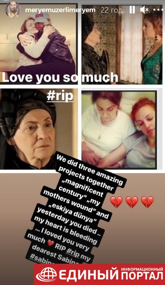 "Я так тебя люблю. Мы работали вместе в трех потрясающих проектах: . Вчера тебя не стало. Мое сердце разбито", – отметила Узерли.