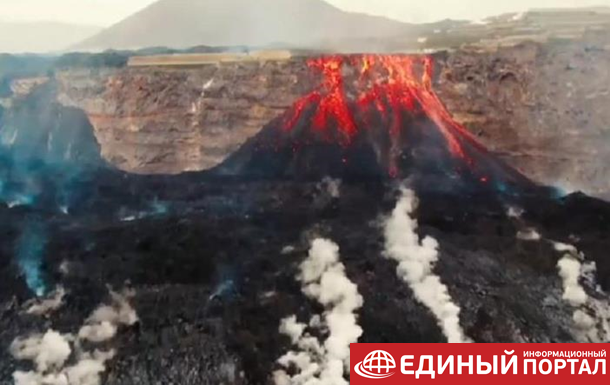 Вулкан выбросил высоко в небо столб лавы, а его северная сторона обрушилась. Новый поток лавы,