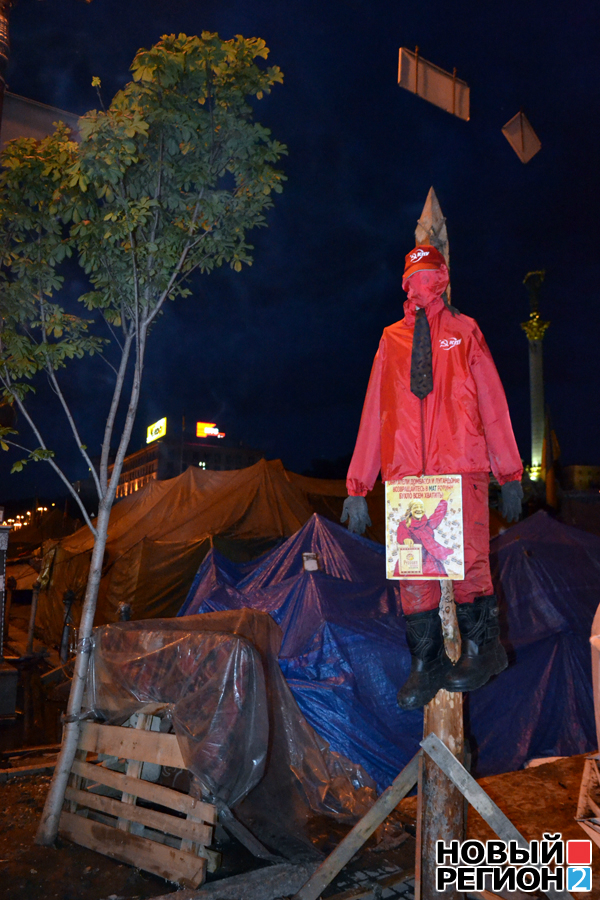 Этот кол стоит возле казацкой сотни палаток на Майдане. Как рассказали казаки, коммунист висит уже не первый день.